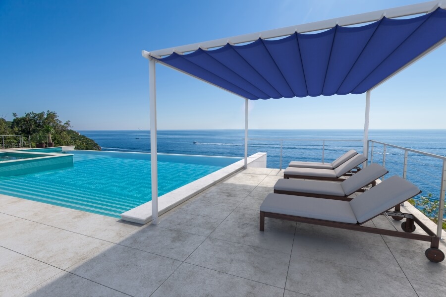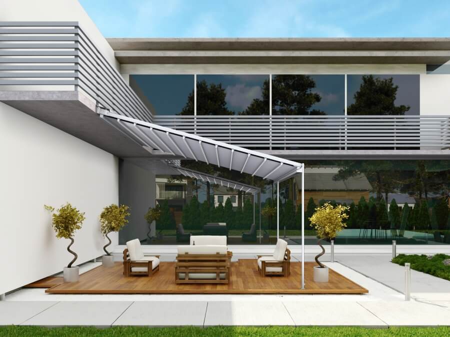 Indicado para grandes áreas, com possibilidade de fechamento lateral integrado. Solução completa para espaços externos sofisticados.